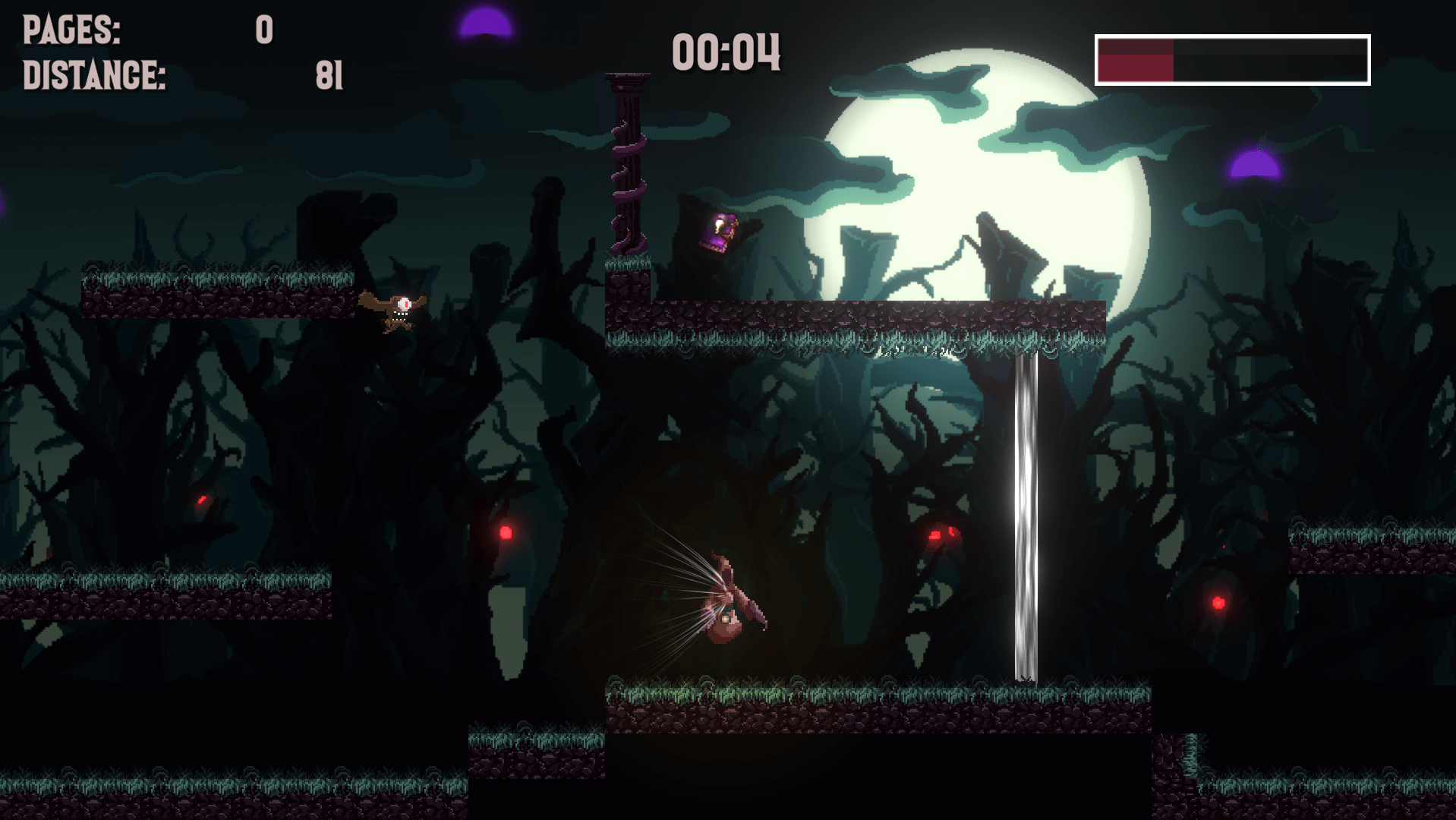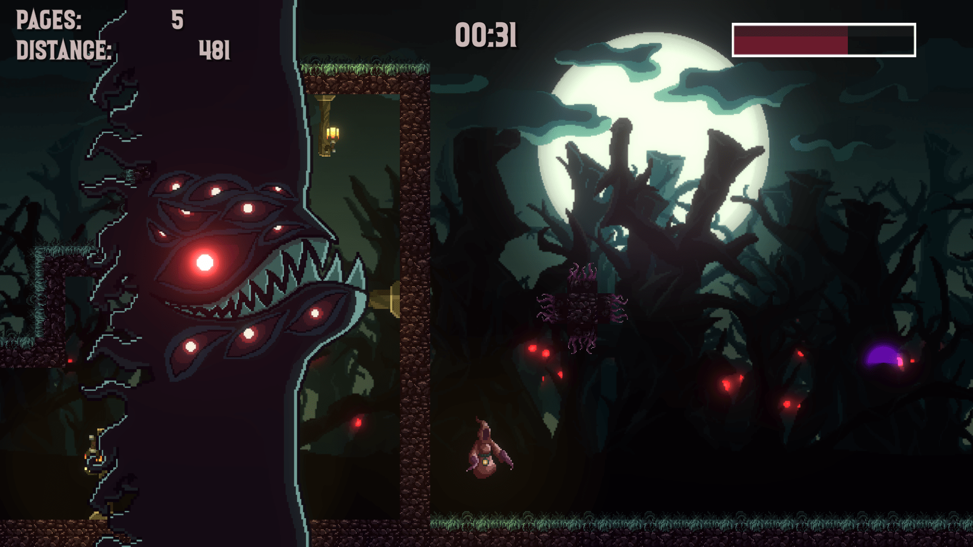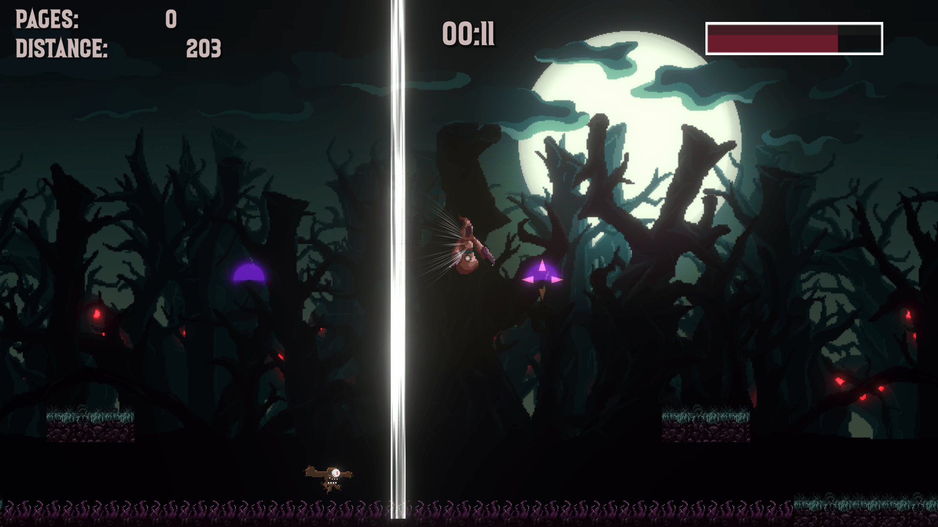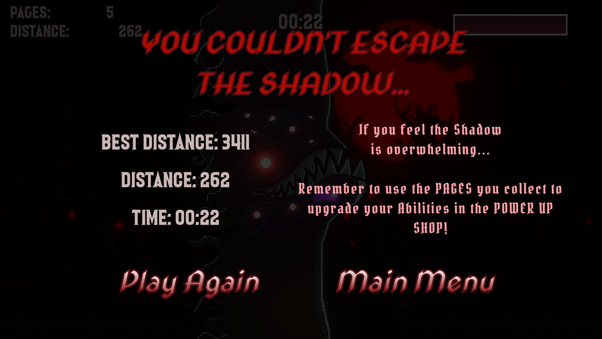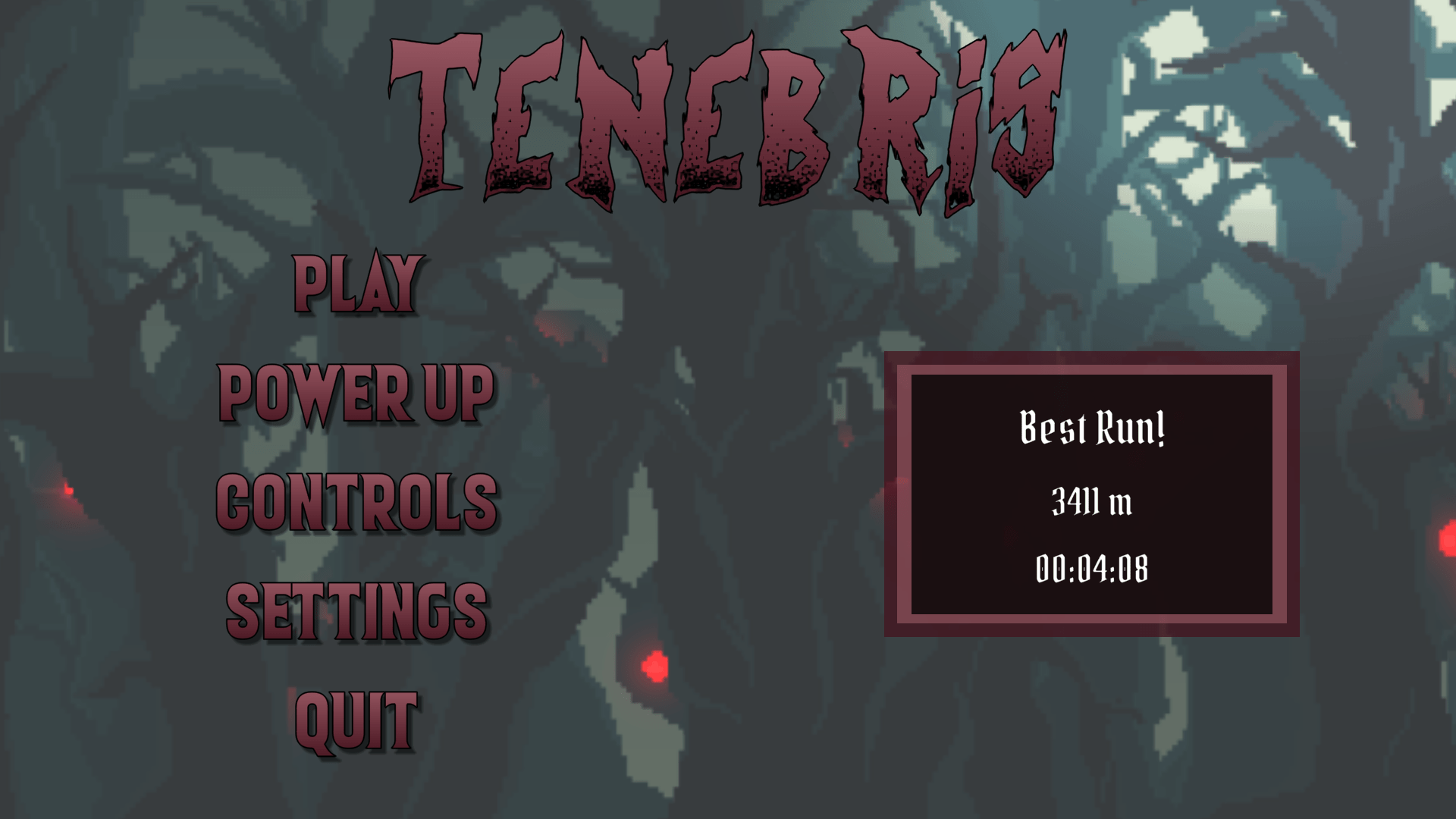 Tenebris is a 2D endless runner with pixel graphics developed in Unity. The player takes the role of a cultist in a lovecraftian inspired world that accidentaly summons a monstrous entity with malicious intents. The cultist finds themselves using the otherwordly powers connected to another layer of reality to escape the entity and save themselves. The player will power up the cultist with every run to reach a new record.